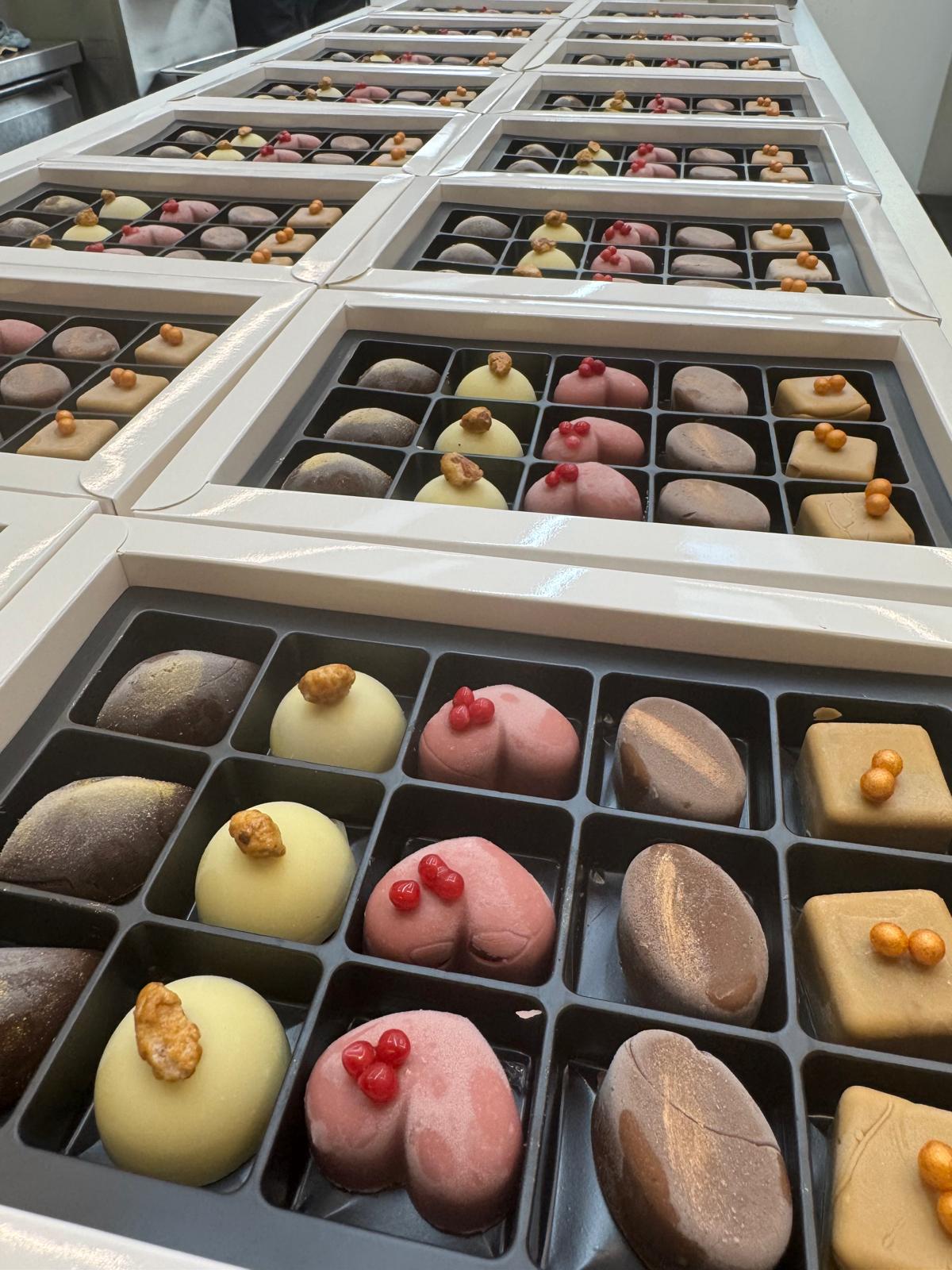 Een doos ijspralines (15 stuks/doos) bestaat uit 3 x 5 smaken.